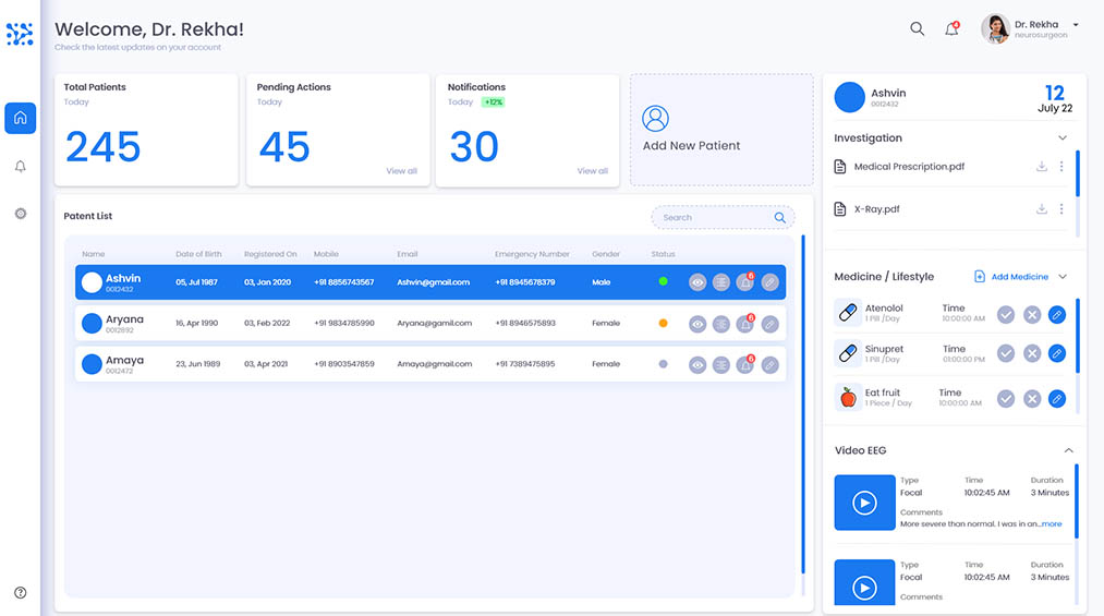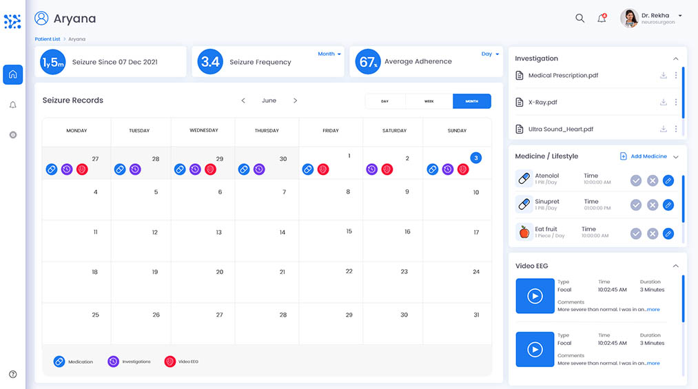 Our cutting-edge mobile and web application combines AI technology with epilepsy management. It offers real-time seizure detection for immediate alerts and safety, improving the lives of individuals with epilepsy and their caregivers. Additionally, the app simplifies record-keeping by securely storing seizure history and medication prescriptions from online doctors. This integrated approach empowers users to track patterns, make informed decisions, and share crucial data with healthcare professionals for more effective treatment.